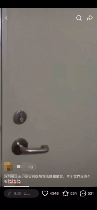 视频中,业主掀开一扇防火门后,裸露了另一扇派头的仿古式朱红色大门,排闼进去后相似是豪华的仿古装修,与门外堆积着杂物的巨匠区域酿成较着对比。