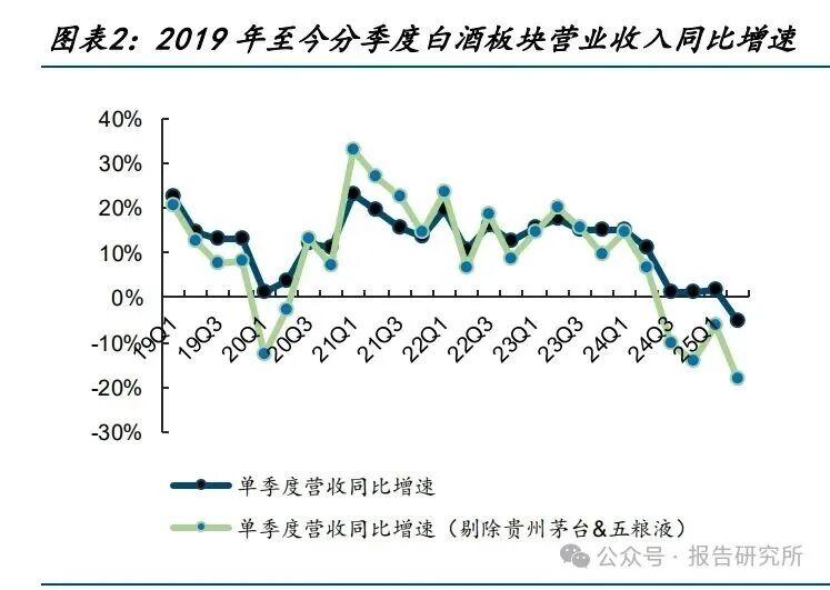 行业层面,25H1 白酒板块所有完毕营收 2397 亿元,同比-0.9%,与行业层面情况基本相 仿(凭据酒协浮现数据,25H1 白酒规上企业数目为 887 家、同比减少 100 家以上,规上 白酒企业完毕销售收入 3304.2 亿元,同比+0.2%)。其中,25Q2 白酒板块完毕营收 872 亿 元,同比-5.0%,为此轮周期下初度单季度板块营收录得同比下滑。 细拆来看,白酒板块里面分化进一步加重、头部酒企齐集度握续提高。25Q2 贵州茅台+五 粮液营收占白酒板块比重达到 62.6%、同比+6.0pct;剔除 CR2 后白酒板块 25Q2 完毕营收 326 亿元,同比-18.2%、连气儿四个季度下滑且下滑幅度加大(24Q3/24Q4/25Q1 辨别同比 -10.0%/-14.1%/-6.4%)。 分子板块:25H1 高端/次高端/区域酒过火他辨别完毕营收 1586/287/524 亿元,同比辨别 +6.1%/握平/-17.6%。其中,25Q2 辨别完毕营收 617/93/162 亿元,同比辨别+3.4%/ -5.4%/-27.4%。 合座而言,二季度自己白酒行业属于相对淡季,访佛消耗场景遭受相对权贵的外部风险冲 击、且无论企业端照旧住户端消耗表情仍相对低迷,因此白酒板块 25Q2 收入端录得同比 下滑、非头部酒企下滑幅度加大。筹商到白酒消耗场景拘谨的影响主要始于 5 月下旬、并 未连气儿二季度,且该部分影响虽现在不雅察到环比有所改善、但影响进度仍相对严峻,咱们 预测短期白酒板块收入端仍将承压。